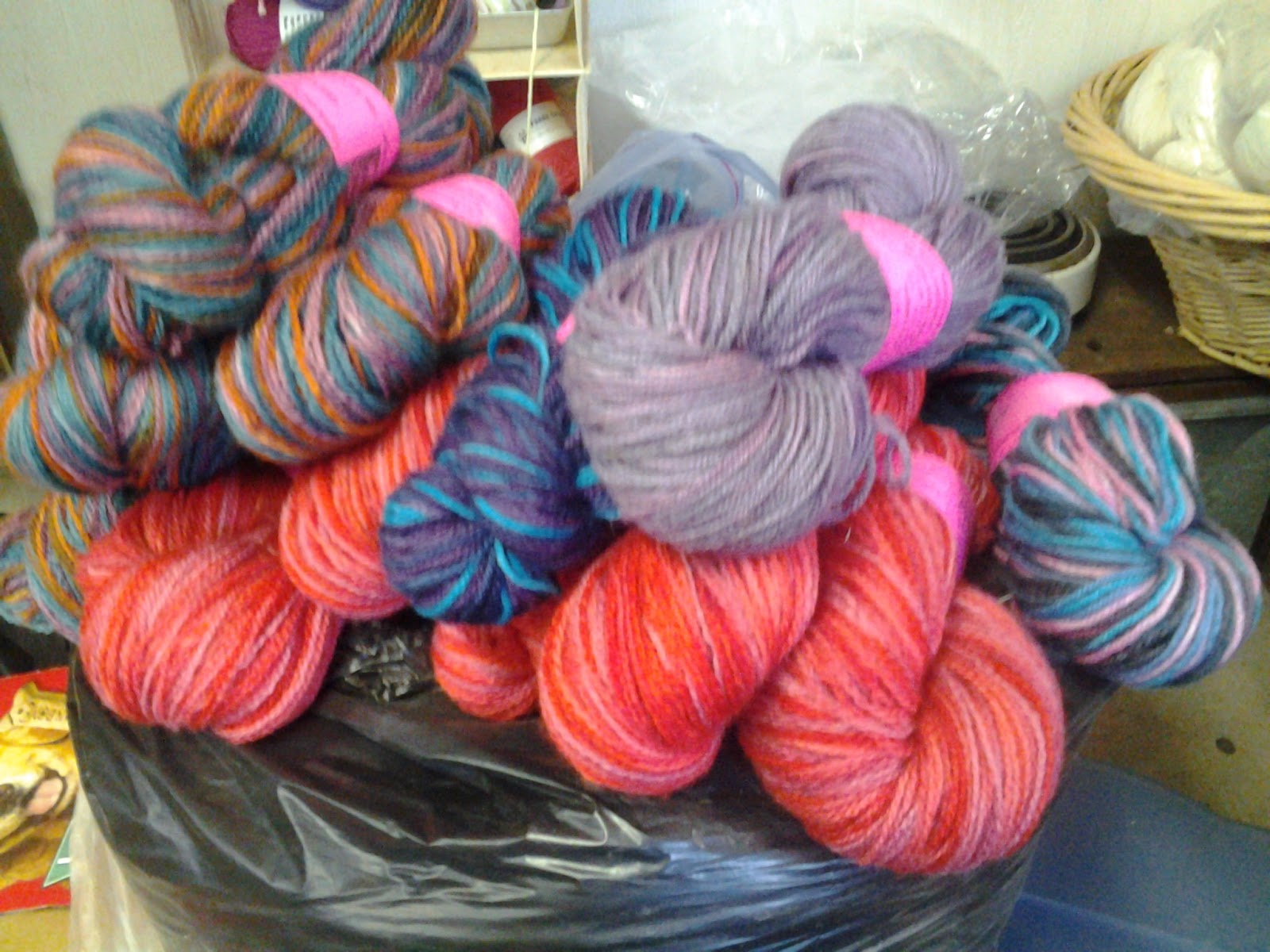 Leslie is dyeing much yarn for Olde Liberty Fibre Faire, held in Goode, Virginia, on April 23.